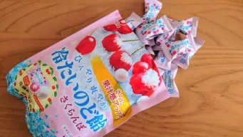 おやつレビュー「冷たいのど飴さくらんぼ」を実食!ひんやりパウダーたっぷりの小粒キャンディ
